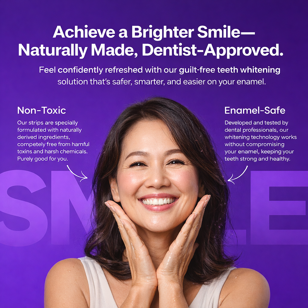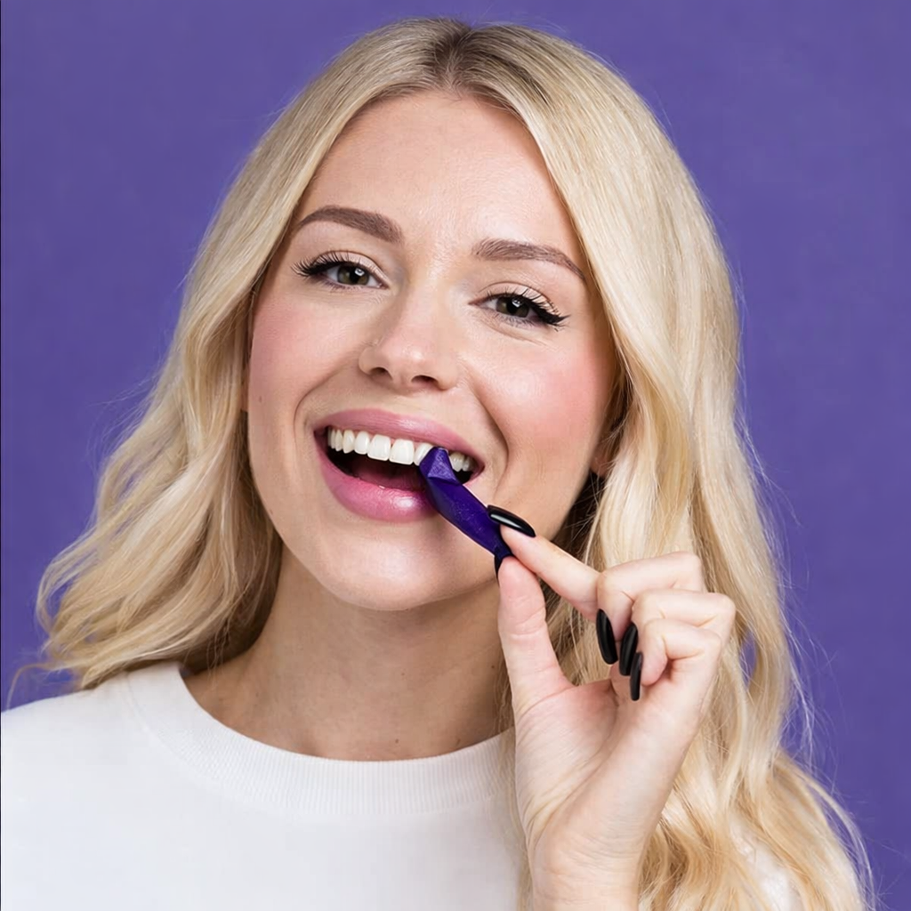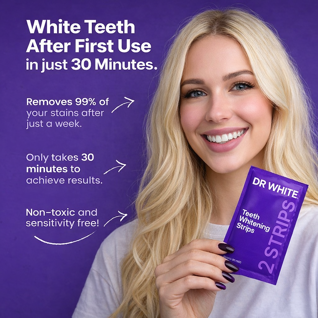 DR WHITE's 2.0 purple teeth whitening strips are an advanced whitening solution designed to visibly brighten your smile. They are applied directly to the teeth and work in just 30 minutes to help reduce surface stains and discoloration.